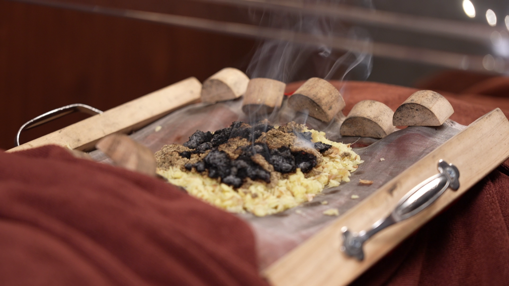 第三步驟是隔姜艾灸,會(huì)先鋪一層新鮮的老姜,在老姜上放艾絨并點(diǎn)燃,艾的熱力會(huì)通過(guò)姜滲透到子宮,可以加強(qiáng)溫經(jīng)散寒的功效。因?yàn)榘萑紵a(chǎn)生的紅外線滲透力,可以提高人體免疫力,達(dá)到化濕、溫經(jīng)通絡(luò)、補(bǔ)中益氣、增強(qiáng)子宮血液循環(huán)、促進(jìn)新陳代謝。不過(guò)醫(yī)師提醒,來(lái)經(jīng)時(shí)不可以敷姜艾,因?yàn)橛袡C(jī)會(huì)令月經(jīng)延長(zhǎng),或經(jīng)量變多,而按肚和針灸就可以如常進(jìn)行。