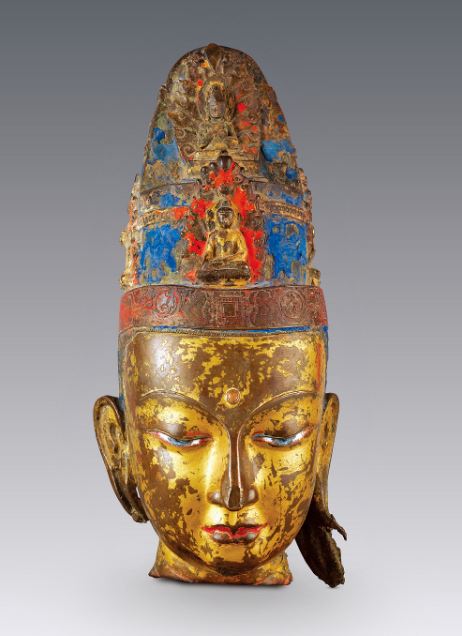 彩繪大日如來佛鎏金銅頭像(公元8-9世紀)(相片來源:敦煌研究院提供)