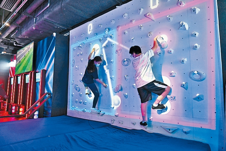 配合燈光效果進行的同步攀石玩意,刺激又好玩。