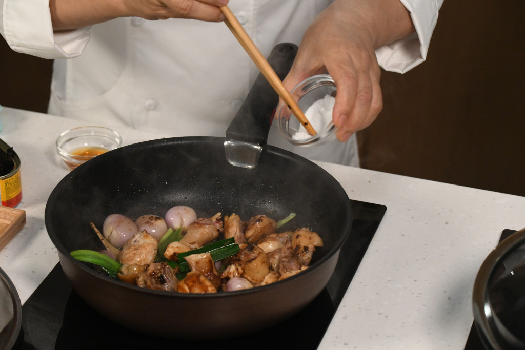 小貼士:將雞肉預(yù)先煎香才燜煮,更香濃惹味。