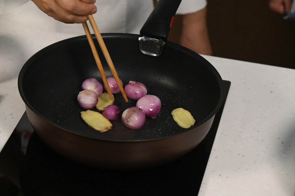 4. 起油鑊,爆香將姜片、紅蔥頭。