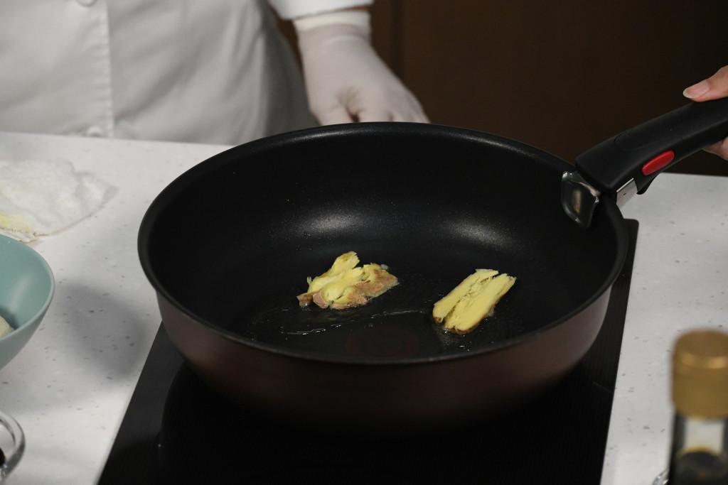 以姜片起鑊增加香氣。