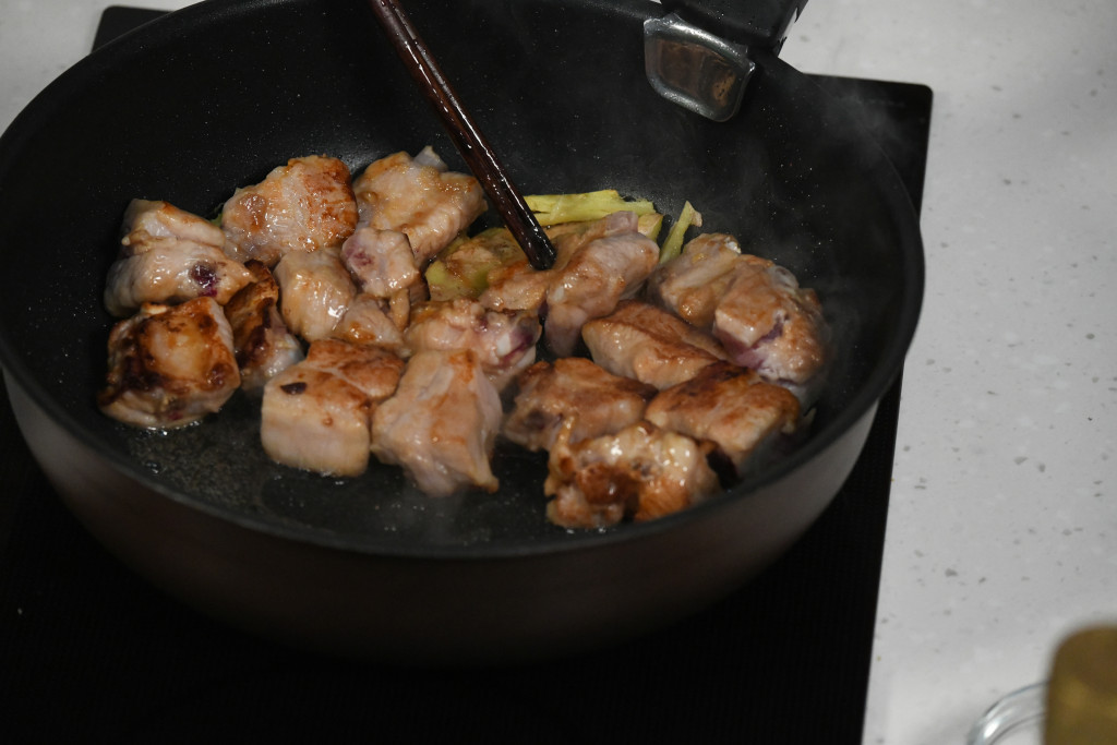 小貼士:將排骨煎香才燜煮會更香口。