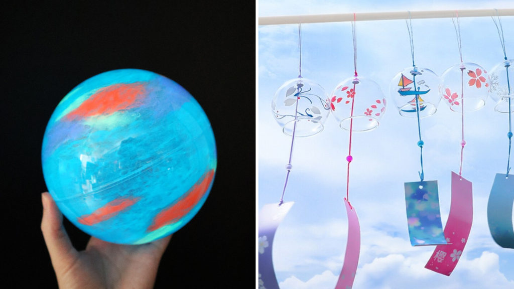 清脆的風(fēng)鈴聲響往往有安撫心靈之效,亦能為這暑氣未消的日子帶來絲絲涼意感覺,工作坊導(dǎo)師會為參加者提供一個(gè)透明日式風(fēng)鈴,再教導(dǎo)大家利用顏料為風(fēng)鈴繪畫圖案,增添色彩,并可以在吊卡上寫上祝愿字句。