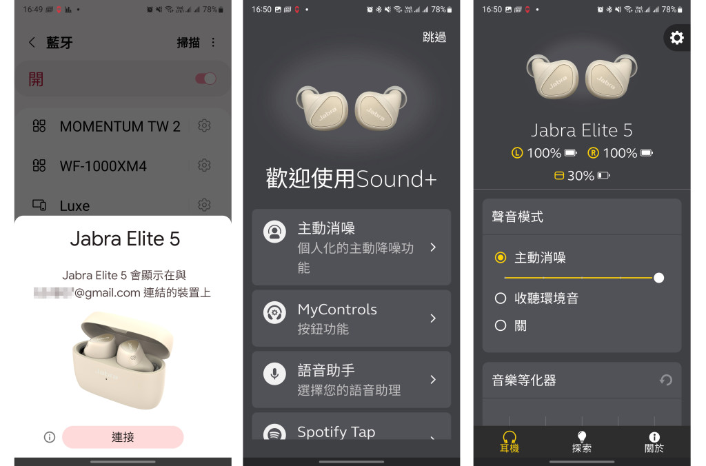 Elite 5支援Google Fast Pair快速配對(duì),并可經(jīng)《Sound+》App調(diào)校降噪強(qiáng)度及按鍵功能。