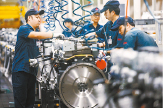 ▲浙江杭州一家工廠生產(chǎn)重型卡車發(fā)動機的工人。法新社