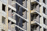 ▲一名建筑工人正在新公寓樓上工作。美聯(lián)社資料圖片