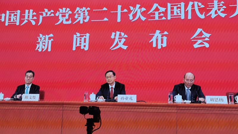 ▲中共二十大舉行首場記者會,新聞發(fā)言人孫業(yè)禮亮相。