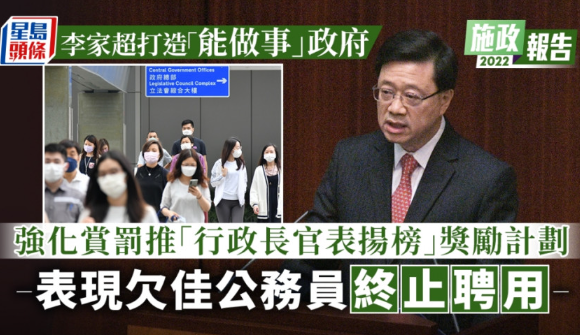 李家超稱需要“能做事、做成事”的政府,故公務(wù)員作為政府的骨干更是關(guān)鍵。政府會強化公務(wù)員管理,措施包括: