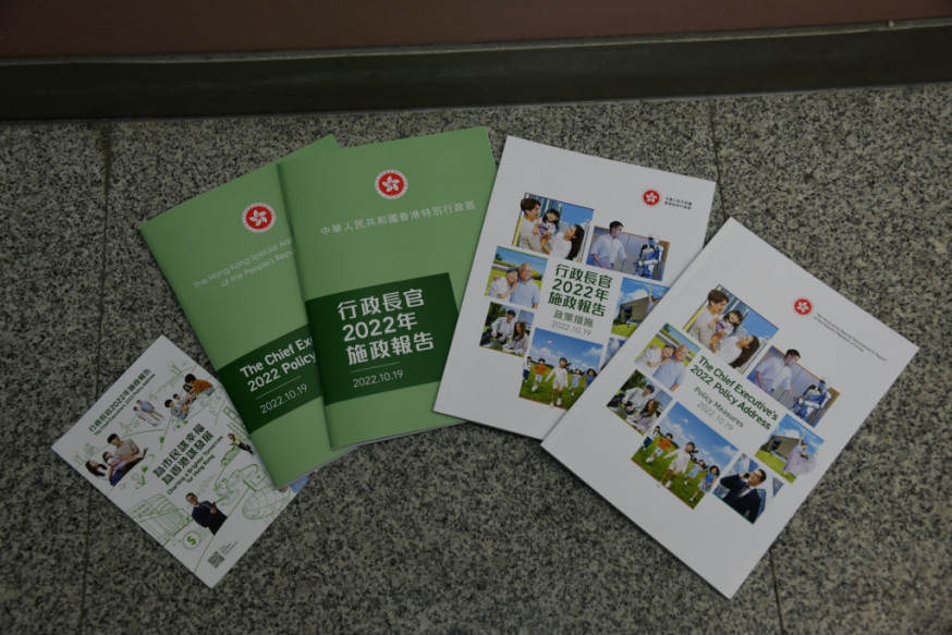 ▲李家超首份《施政報(bào)告》。(伍明輝攝)