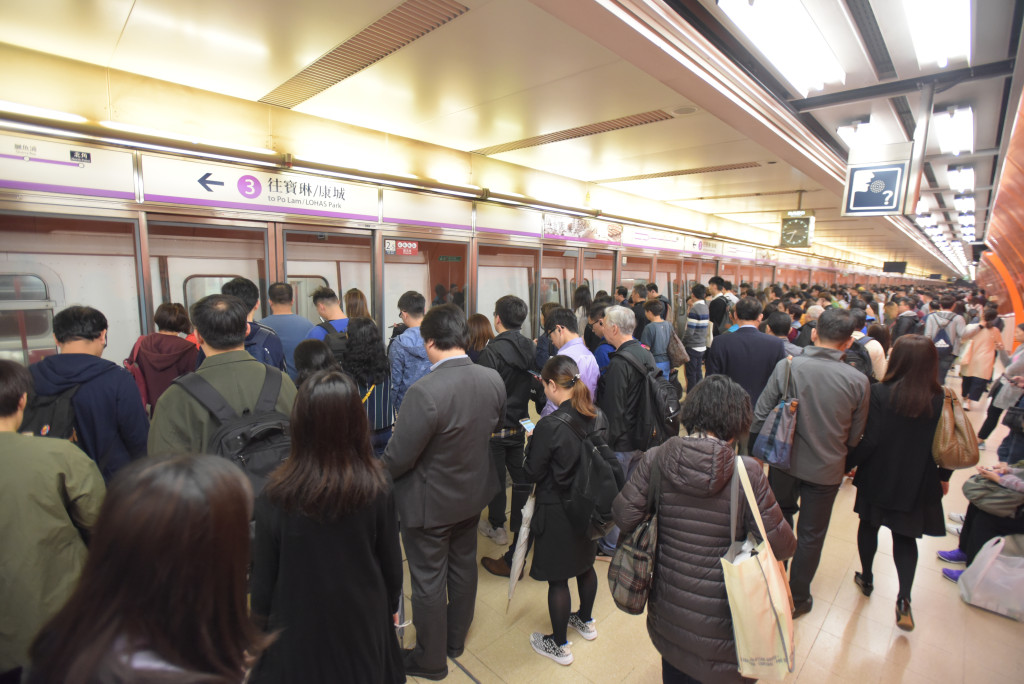 ▲將軍澳線過(guò)去曾因故障,導(dǎo)致大批乘客逼爆月臺(tái)。資料圖片
