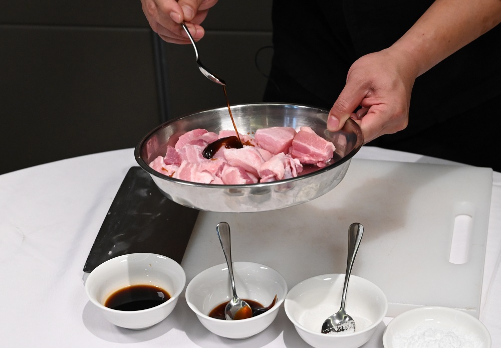 ▲葉世昌師傅教路,就算醬汁濃郁,排骨也必須預(yù)先腌好才會入味。