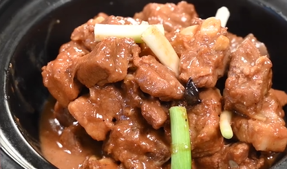 排骨加入南乳燜煮至入味,吃起來肉香多汁、不油不膩。