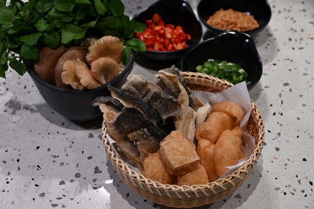 ▲新推的火鍋套餐包括蔬菜籃和炸品,可以吃到每天限量的川龍西洋菜。