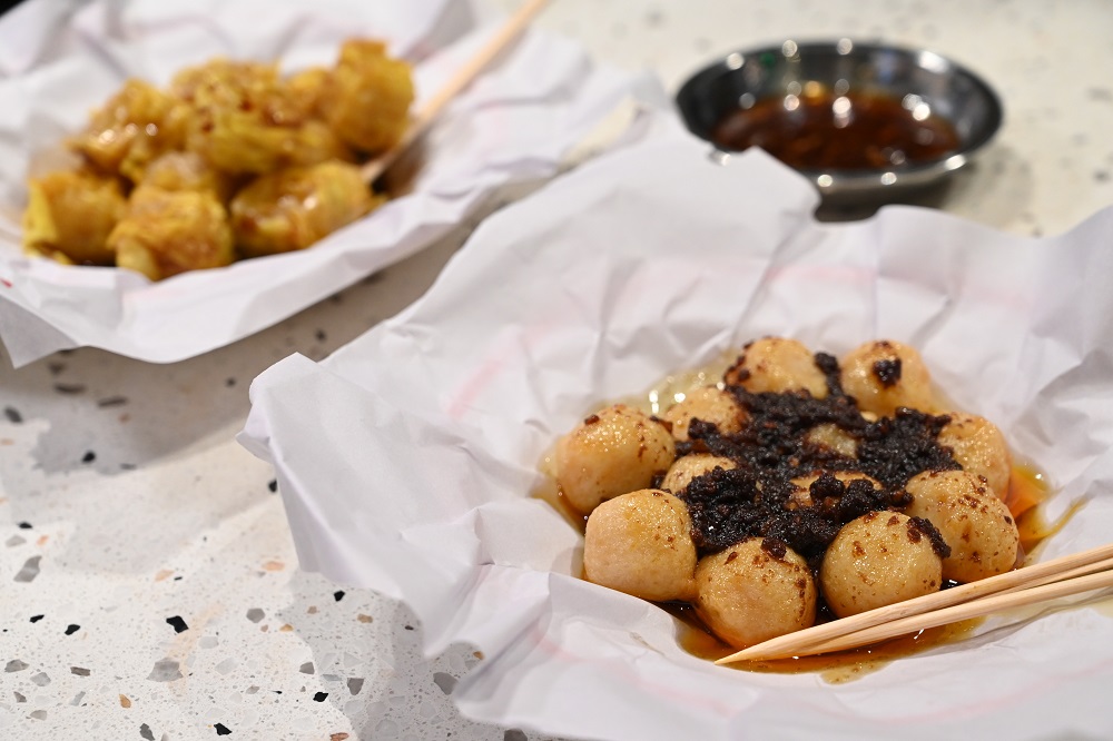▲自家制的咖喱魚蛋 與懷舊魚肉燒賣,最適合做餐前小吃。
