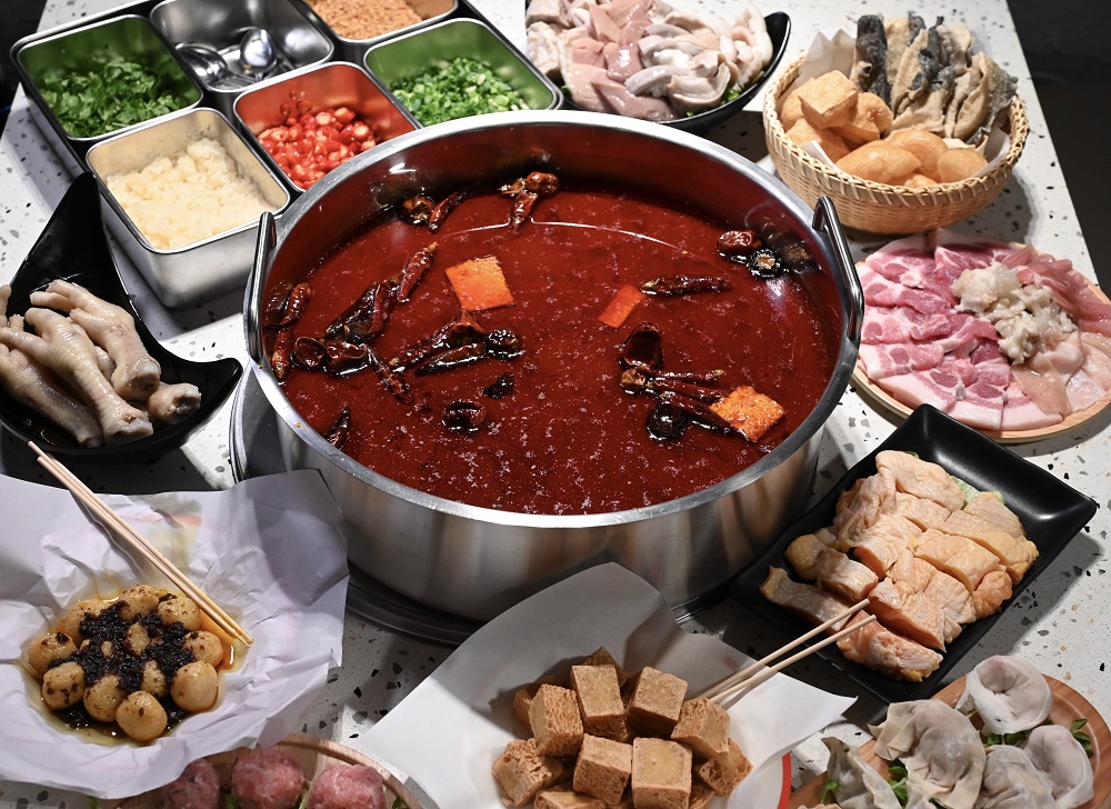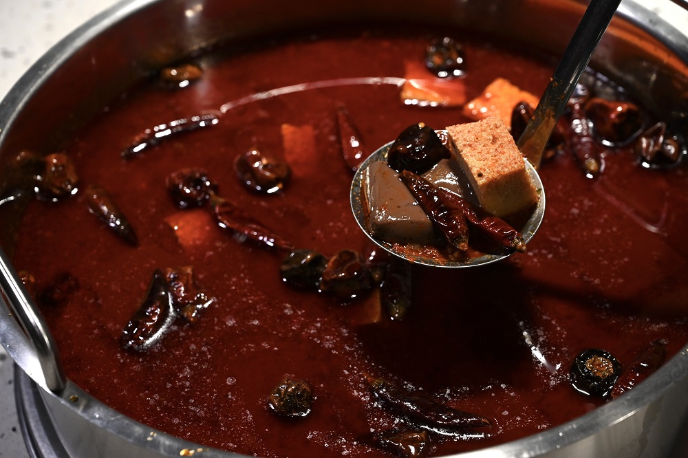 以喜勝沙嗲萵筍為例,加入了不同比例的沙嗲醬、沙茶醬及粗?;ㄉu熬煮而成,湯汁濃稠香濃后,才加厚切萵筍片,提升清爽口感。至于臺式麻辣新鮮雞紅冰豆腐,是以自家熬制的清雞湯,混合多種麻辣香料、醬汁、辣油及調(diào)味品調(diào)校而成,配上新鮮雞血和冰豆腐,愛吃辣的不會失望而回。