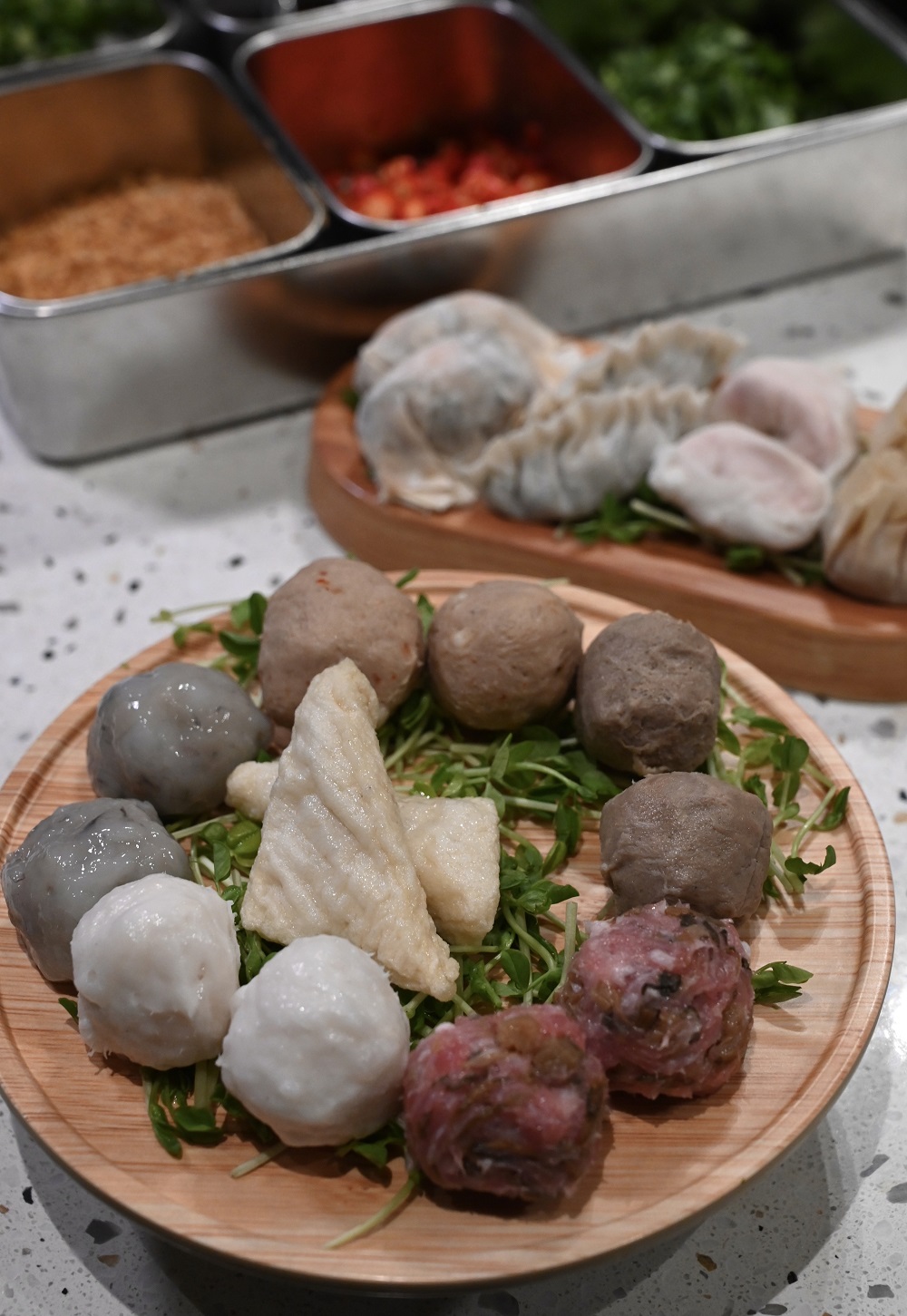 ▲店家的招牌之一,是每天由師傅新鮮即制的手打丸,包括梅菜豬肉丸、咸蛋豬肉丸、墨魚滑、蝦滑、潮汕牛丸、麻辣貢丸、魚蛋及魚片頭等。聽師傅說,手工丸類注重食材新鮮度,而且工序繁復(fù)。象是梅菜豬肉丸,要預(yù)先處理梅菜和豬肉,然后將兩者混合再打至起膠,吃起來才會爽口彈牙。