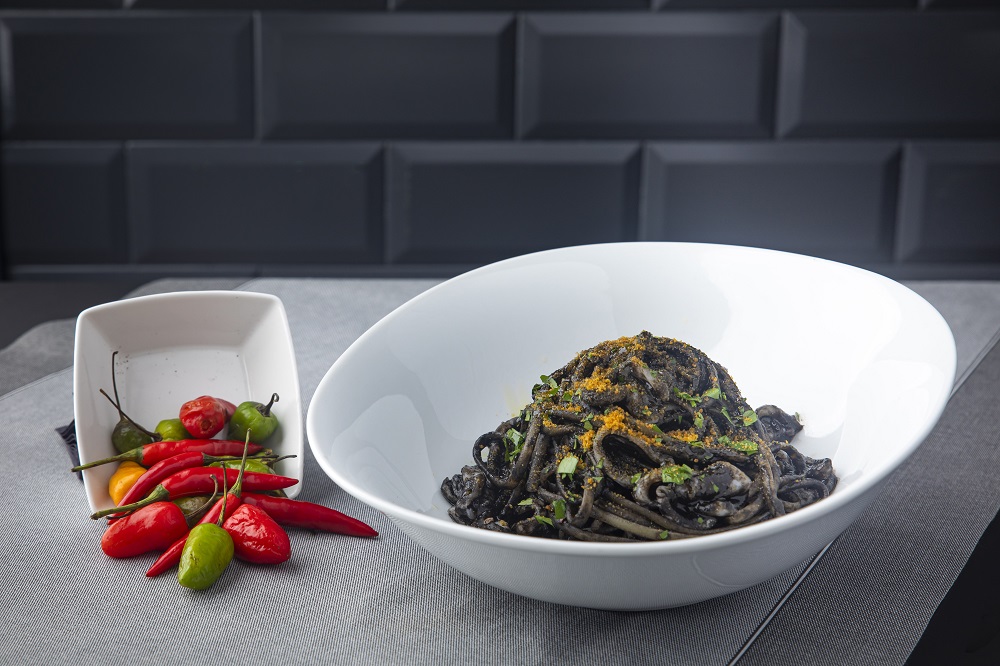 ▲墨汁烏魚子魷魚扁意粉富海洋風(fēng)味——PAZTA 任食意粉放題