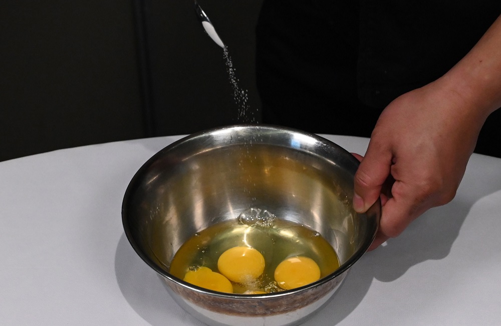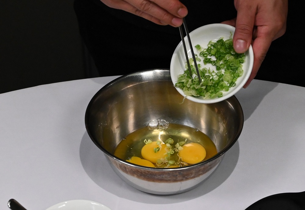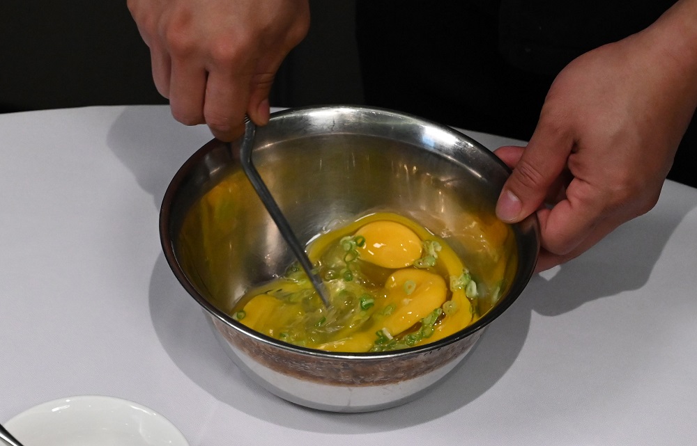 ▲3. 將鹽、蔥花及雞蛋拌勻。