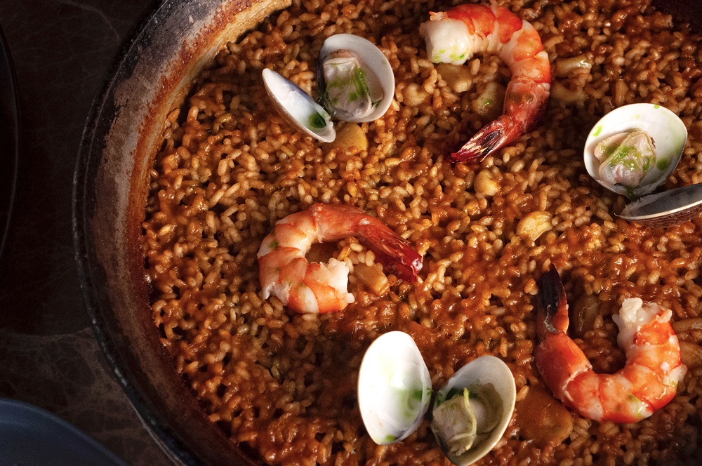 一年四季都有當(dāng)造海產(chǎn)的西班牙,同時(shí)也是稻米之鄉(xiāng),就造了有國菜銜頭的海鮮燉飯,與法國蝸牛、意大利粉并列為西餐三大名菜。在當(dāng)?shù)?,燉飯的做法大多是將時(shí)令的魷魚、紅蝦、青口或蜆肉,加入高湯再放進(jìn)大平鍋中熬煮而成,精髓在于令米飯吸收湯汁及海產(chǎn)精華,然后連鍋上桌奉客,分量足夠大伙人開心分享。