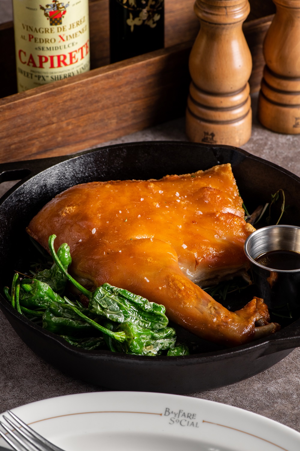 同樣由西班牙籍主廚設(shè)計(jì)餐單的Bayfare Social,Chef Jorge Vera Gutierrez以家鄉(xiāng)美食為靈感,供應(yīng)全新周末午餐菜單,可吃到慢煮脆乳豬、風(fēng)干火腿和油條伴朱古力蘸醬等地道料理,讓味覺游歷一趟西班牙之旅。