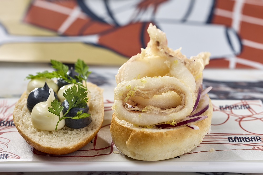 至于由西班牙主廚兼廚藝總監(jiān)Edgard Sanuy Barahona掌廚的BÀRBAR,主打地道街頭美食。以Madrid Squid Bocadillo為例,屬馬德里著名街頭小食,Sanuy將Brioche牛油面包加入脆炸魷魚圈及墨汁蒜蓉蛋黃醬,鮮美香口,是佐酒之選。