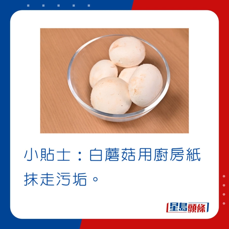 ▲小貼士:白蘑菇用廚房紙抹走泥土。