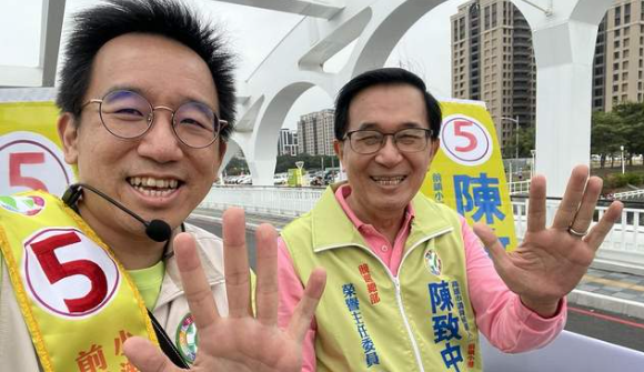 明天(周六)就是九合一選舉投票日,爭(zhēng)取連任的民進(jìn)黨高雄市議員陳致中(前鎮(zhèn)、小港),今天繼續(xù)和父親陳水扁一同掃街拜票。