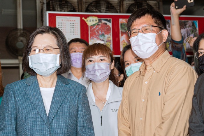 ▲林佳龍陪同蔡英文投完票受訪。林佳龍辦公室提供
