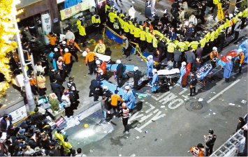10月29日正值萬圣節(jié)前的周末,也正逢韓國疫情解除口罩佩戴令之際,大批民眾前往首爾的梨泰院參加萬圣節(jié)活動,由于事發(fā)地“世界美食街”本身巷子狹窄,再加上有店家擺地攤、額外搭建筑物等,使得空間更加窄小,最終導致踩踏事故發(fā)生,造成至少158人死亡196人受傷、通報失蹤人數(shù)至少4100人,是韓國迄今最嚴重的踩踏事故。因人潮過多,救援人員難以進入且人數(shù)較少,4名高級警員涉嫌因為過失而被扣查。