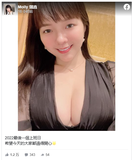 田慎節(jié)昨(30日)在臉書發(fā)文,她表示:“2022最后一個上班日,希望今天的大家都過得開心”,接著曬出一張自拍照,只見她對著鏡頭擺出招牌甜美笑容,放電的眼神瞬間電暈不少粉絲,接著視線往下一移,一對傲人北半球不僅大方見客,更擠出一條深邃事業(yè)線,讓網(wǎng)友看得血脈賁張,不到一天時間就吸引上萬人按贊朝圣。