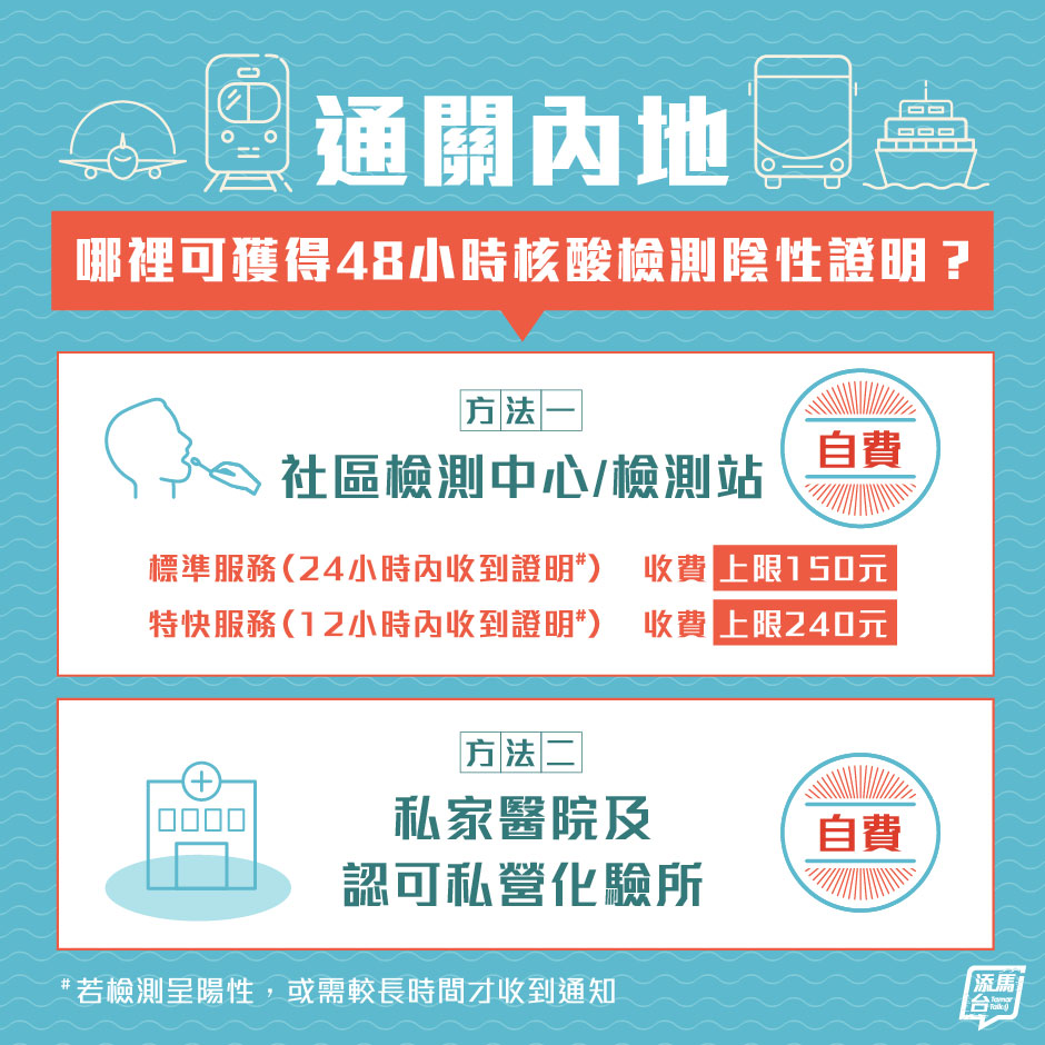 港府提醒,一般情況下,市民使用“標(biāo)準(zhǔn)自費(fèi)服務(wù)”,在采樣24小時(shí)內(nèi)已經(jīng)能夠收到檢測(cè)結(jié)果,有充裕時(shí)間入境內(nèi)地。
