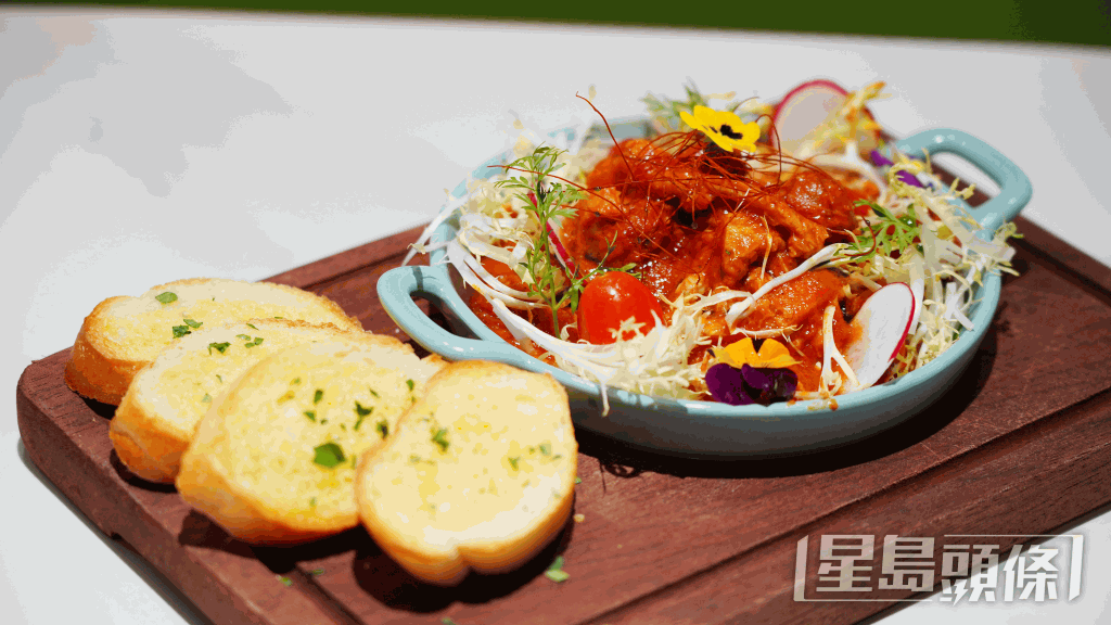 使用彈牙厚肉的大只海蝦,再灑上香草脆面包糠及香茅作伴,配上香烤青檸供客人自行唧汁,客人可以按自己口味自行調(diào)節(jié)酸度,是一款東南亞味十足的意大利面。