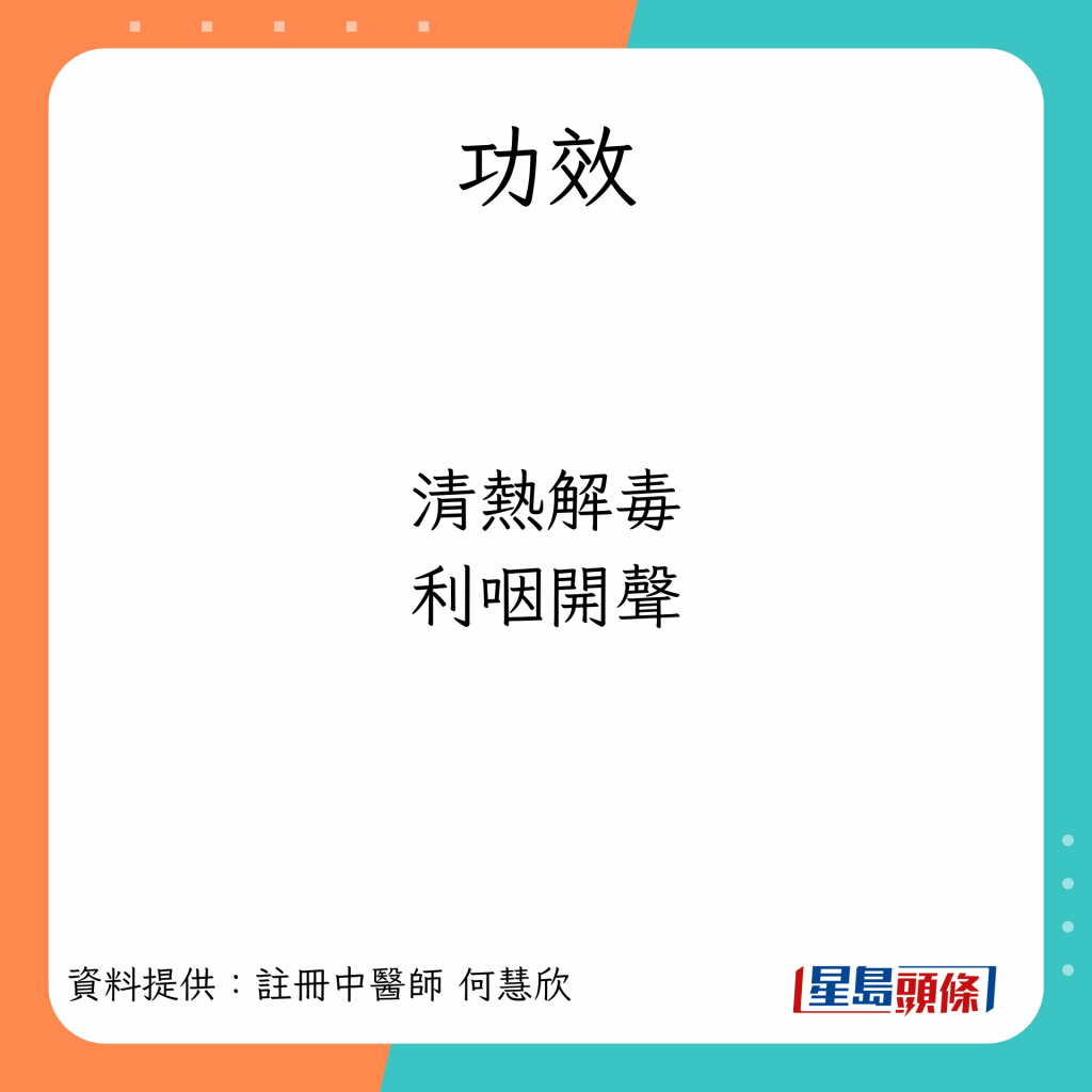 本港注冊中醫(yī)師梁尹倩(Cinci)曾在「CheckCheckCin」facebook專頁發(fā)文,推介2款滋陰清熱湯水,適合喉嚨干痛、便秘等人士,功效、材料及做法如下: