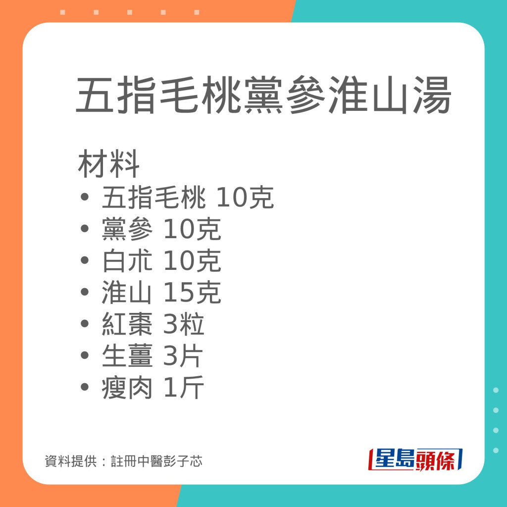 注冊中醫(yī)彭子芯曾在其facebook專頁發(fā)文指,除了新冠肺炎,過勞也會導致腦霧,繼而出現(xiàn)頭痛、頭暈等情況。她推介以下一款補氣醒神湯水,有助緩解腦霧癥狀,消除疲勞,功效、材料及食用宜忌如下: