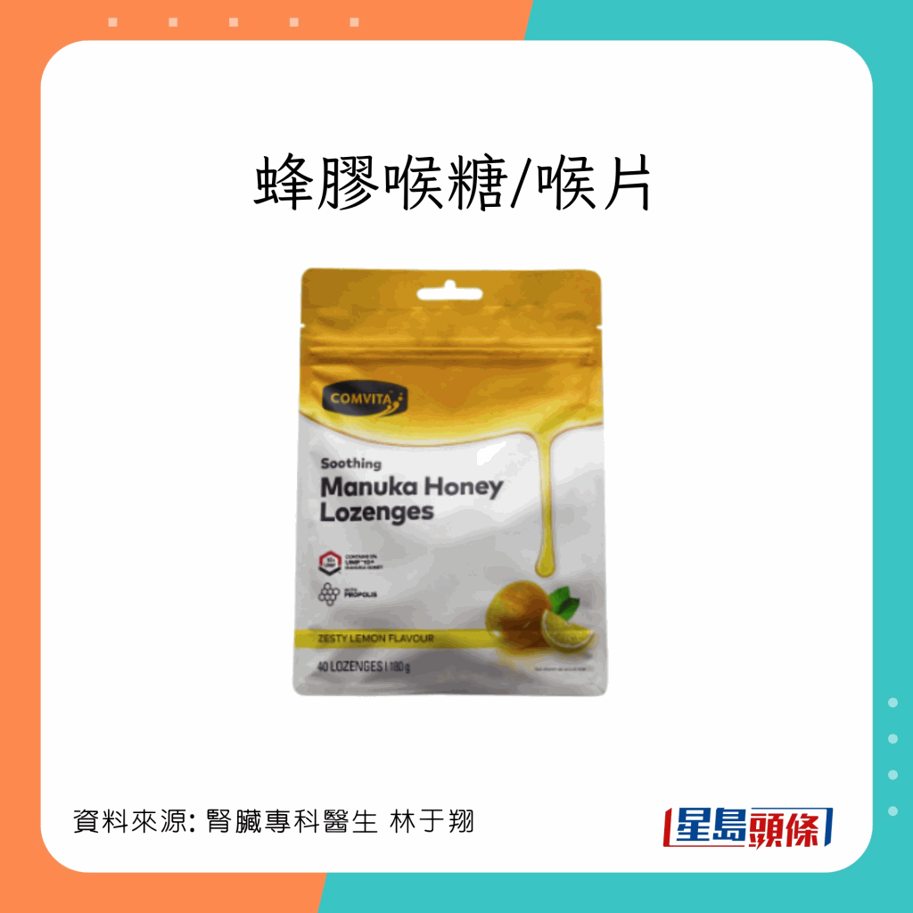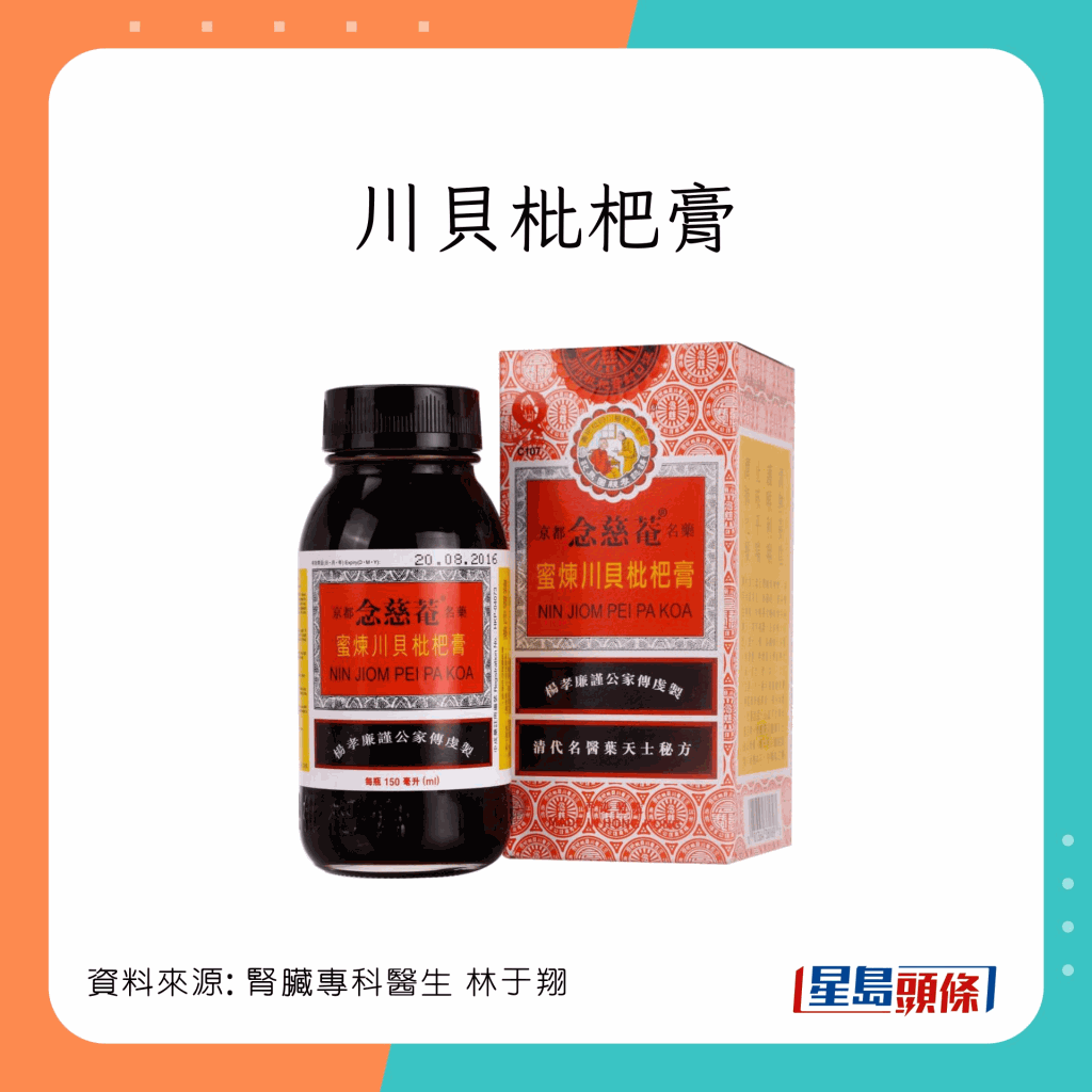 林醫(yī)生提出多種有助紓緩喉嚨痛的食品,其中川貝枇杷膏最為港人熟悉,不少家庭常備家中,以防不時(shí)之需。京都念慈庵為其中一個(gè)品牌,根據(jù)其官網(wǎng)資料,川貝枇杷膏對(duì)痰多咳嗽、喉痛聲沙、喉嚨干涸或虛火上升,都有顯著的功效;用以溫水送服,可以保護(hù)喉嚨、潤肺養(yǎng)顏、清熱降火。