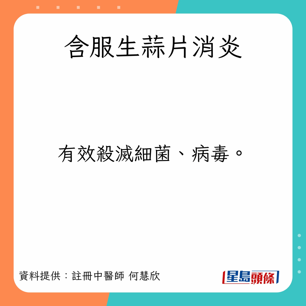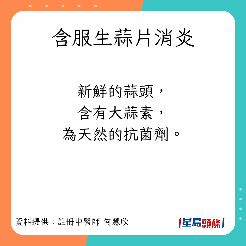 第2招:含服生蒜片消炎