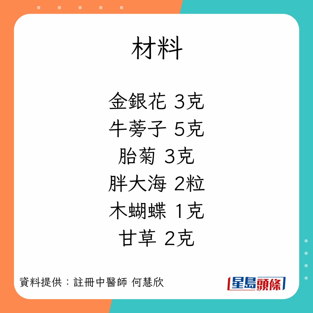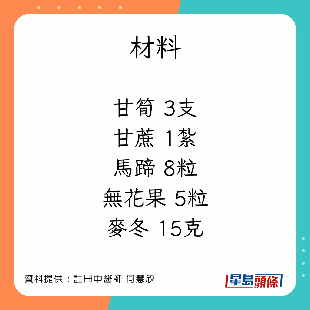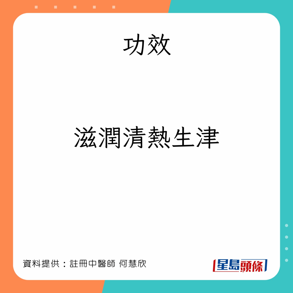 注冊中醫(yī)師何慧欣在其Facebook專頁為大家推介冬日必備的5款湯水、飲料,適合平日多捱夜、常吃辛辣煎炸食物,容易感覺口干舌燥、聲沙、干咳的人士。