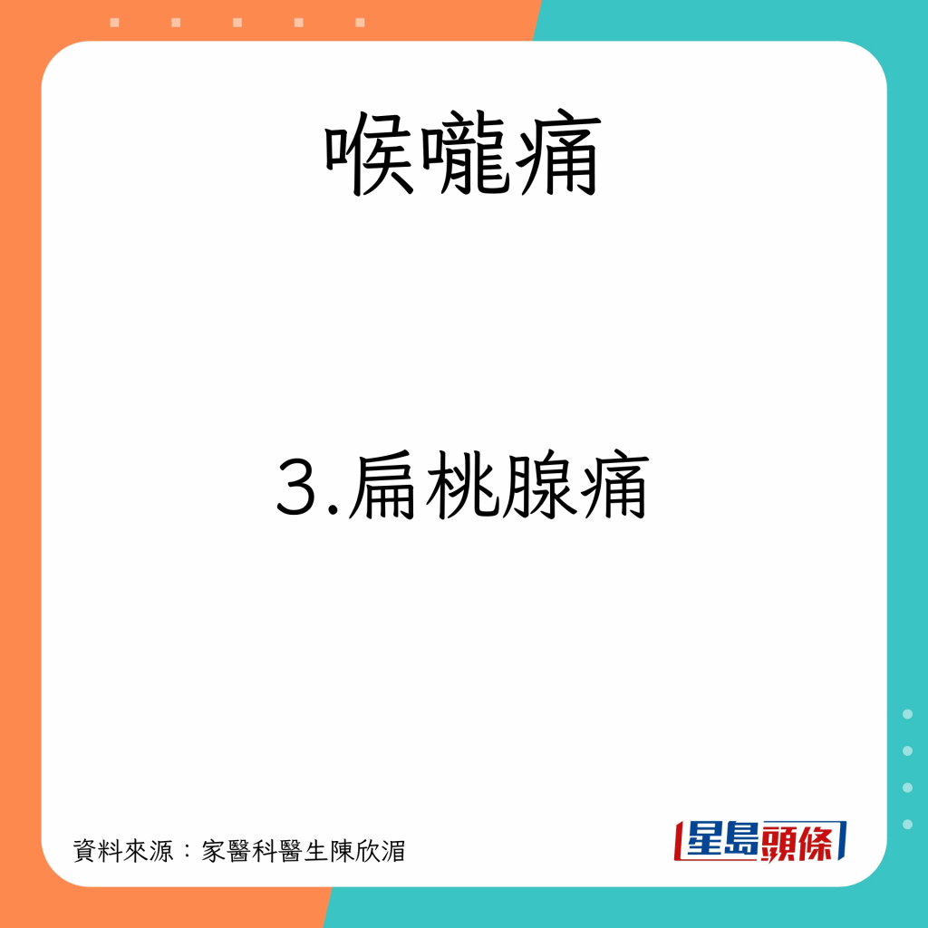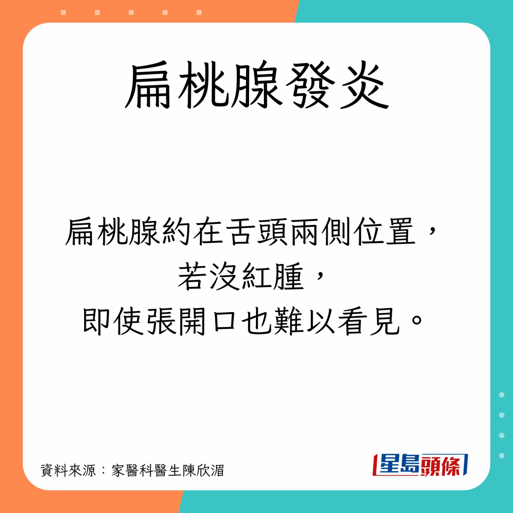 家醫(yī)科醫(yī)生陳欣湄指,喉嚨痛主要分3類并講解何謂扁桃腺發(fā)炎。