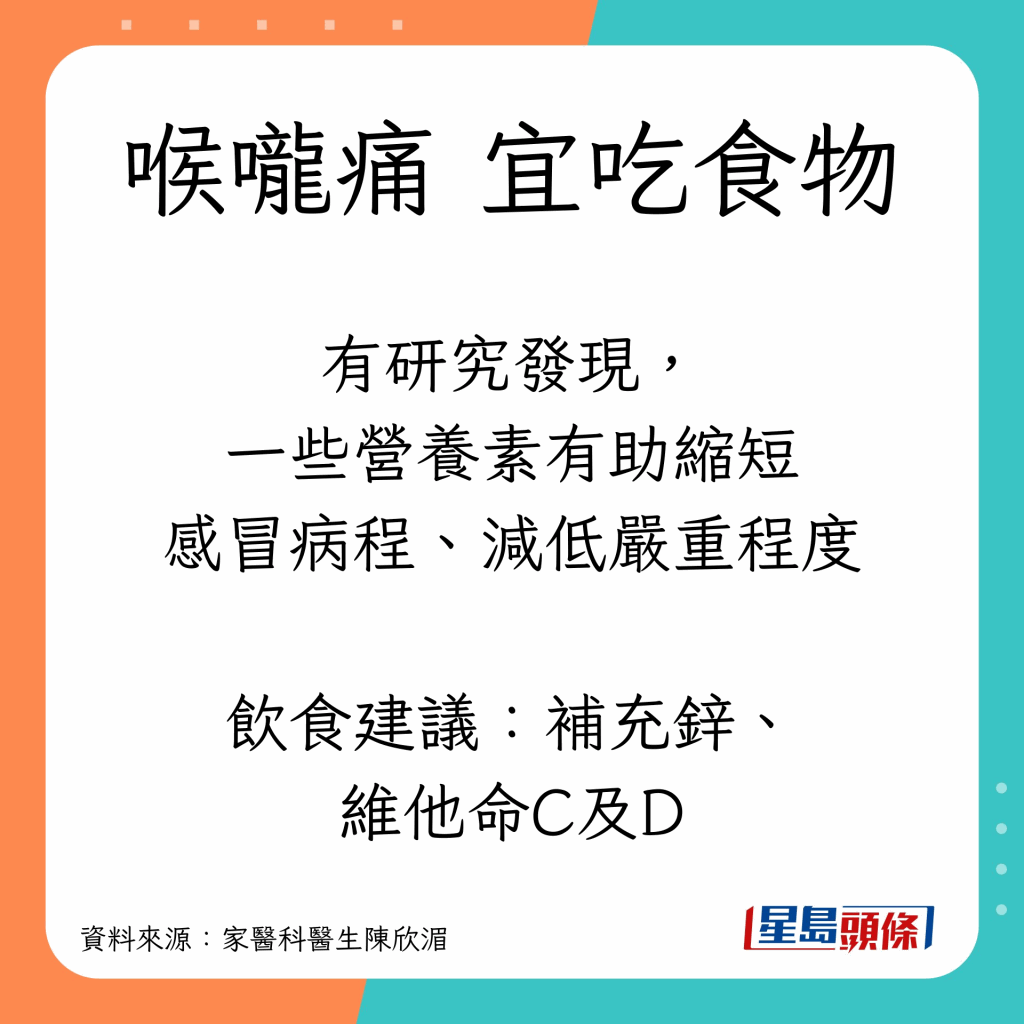 同場加映:喉嚨痛種類+宜吃食物