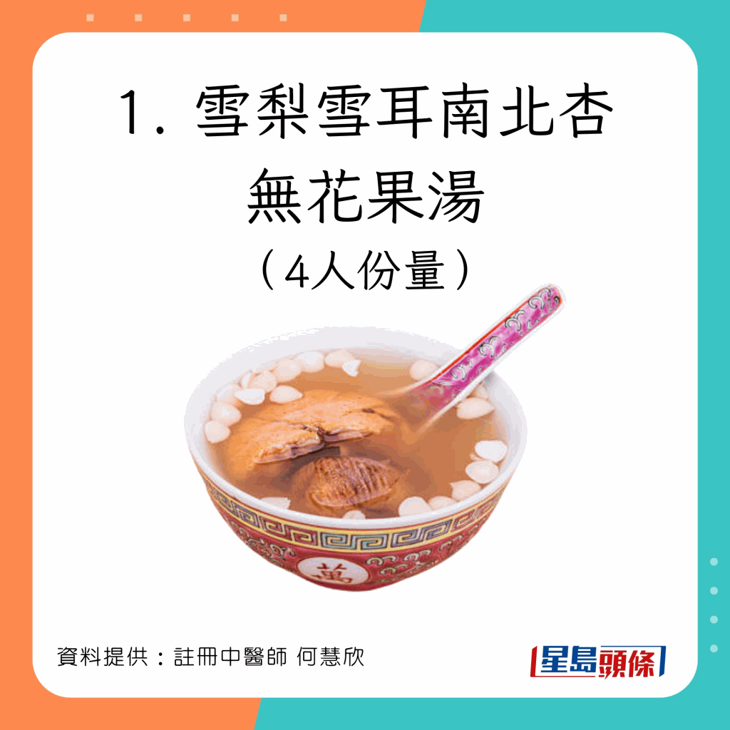 1.雪梨雪耳南北杏無花果湯