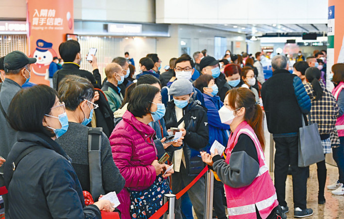 ▲在高鐵西九龍站,售票柜枱仍出現(xiàn)等候購票的人龍。