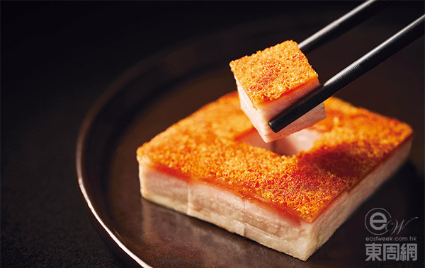 脆皮燒腩仔 烹調(diào)工序繁復(fù),燒腩仔烤至表皮金黃酥脆,肉嫩油香而不膩。 $168/例牌(A)