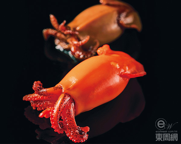 萬豪金殿獻(xiàn)萃前菜 屬于指定套餐的自選前菜,墨魚仔以鹵水及煙熏烹調(diào),爽脆又鮮嫩。$168/位(A)