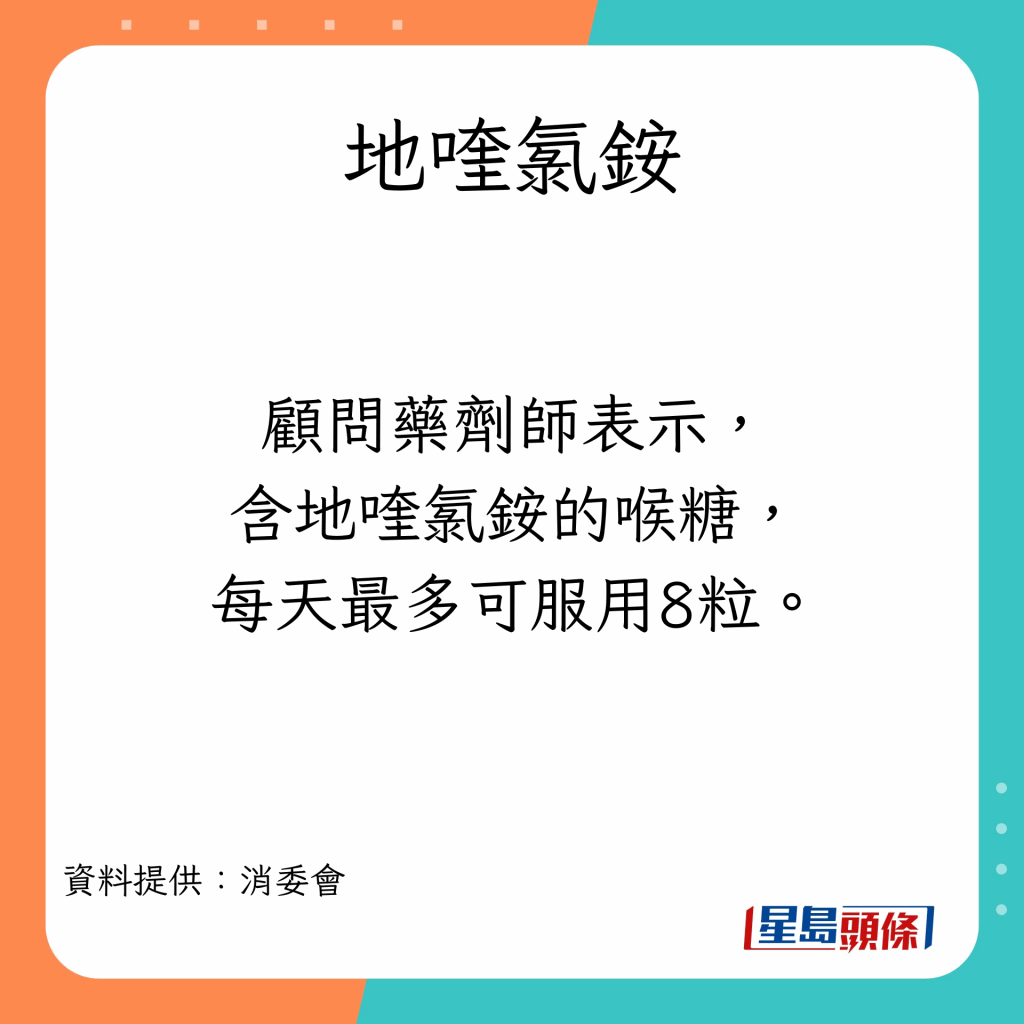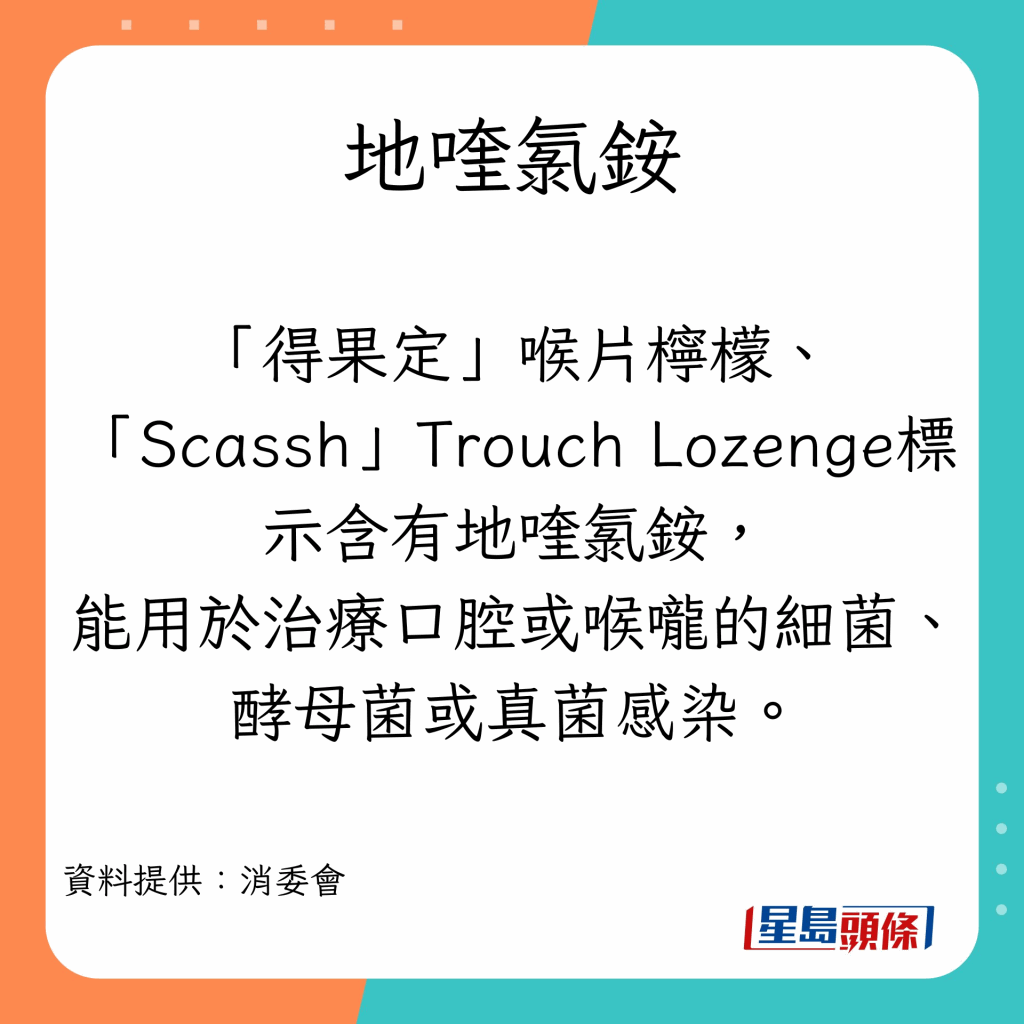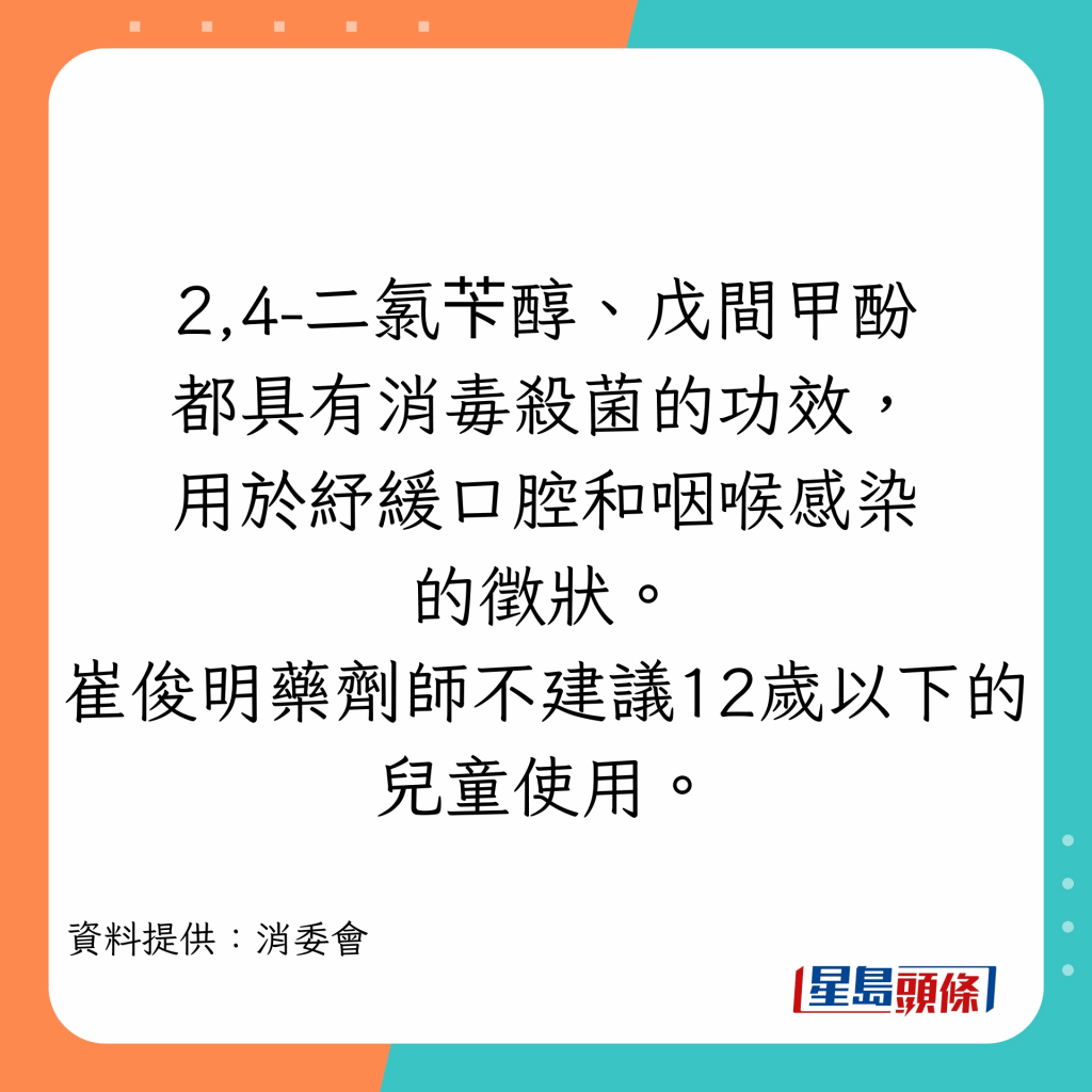 其中有11款喉糖含藥性(10款為注冊(cè)西藥、1款為注冊(cè)中成藥),分別含有西藥成分及中藥成分,有助紓緩喉嚨痛。但消委會(huì)提醒勿服用過量,以免出現(xiàn)副作用,例如口腔痛、過敏或呼吸困難。