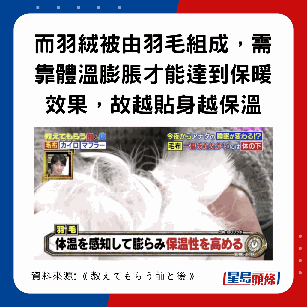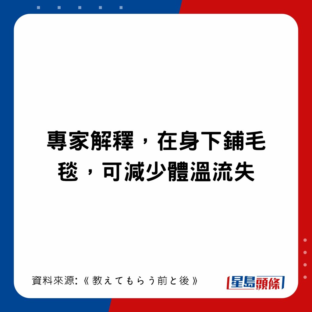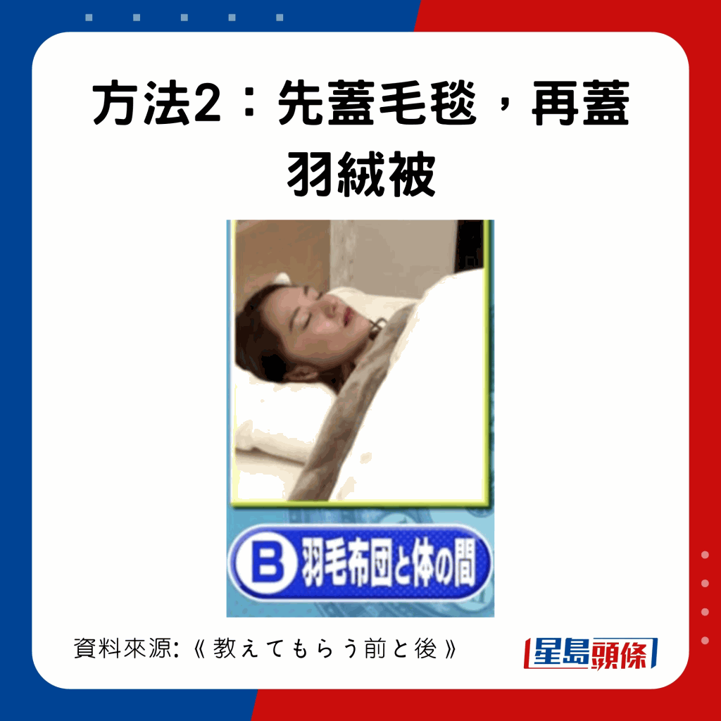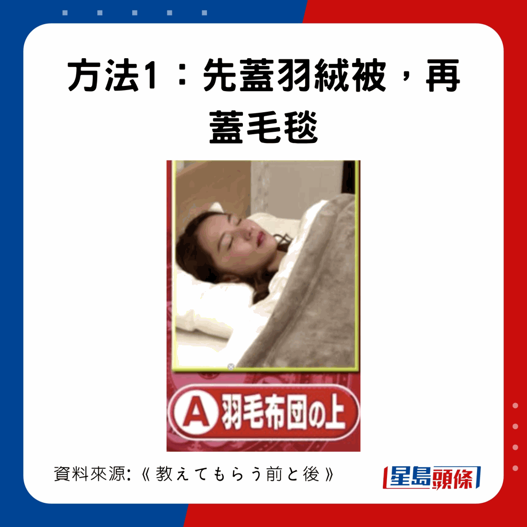 日本節(jié)目《教えてもらう前と後》曾比拼3種蓋被方法,有1個方法可暖4°C,達至25.6°C: