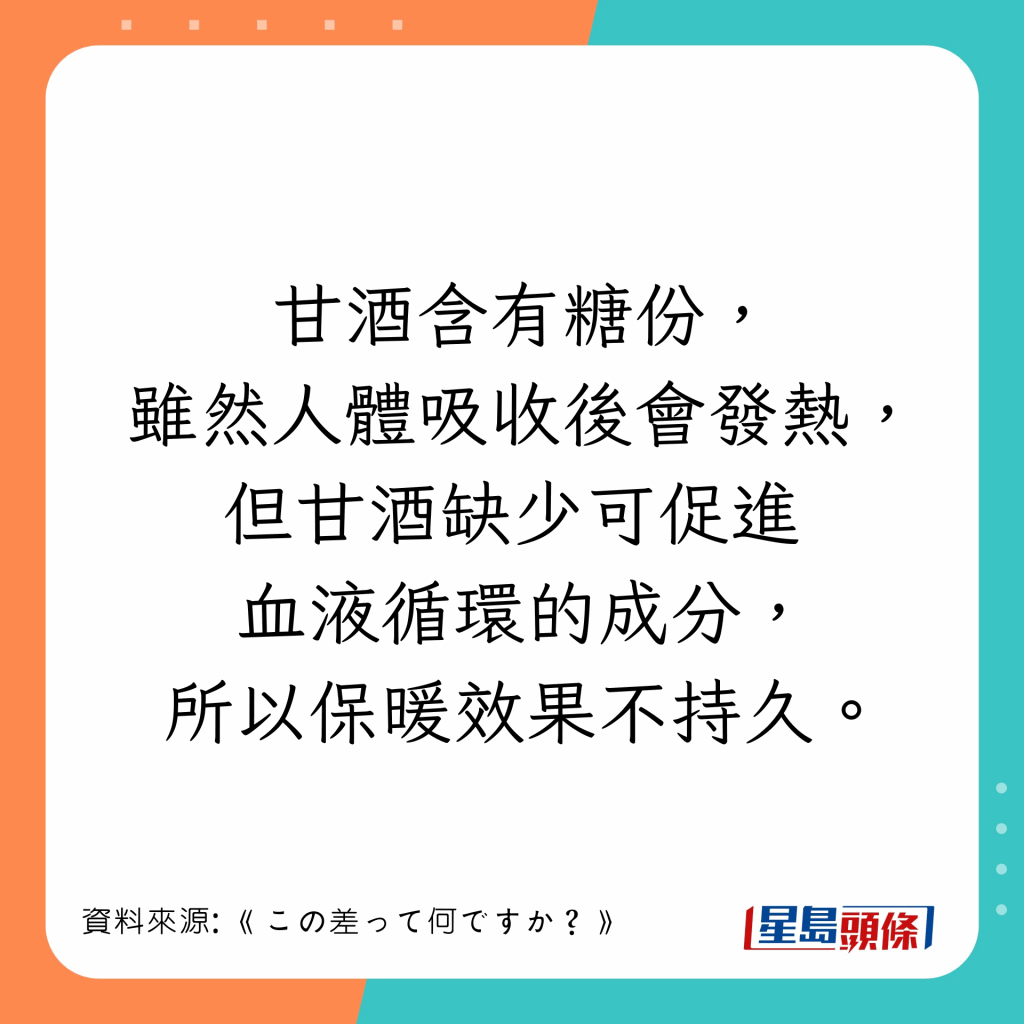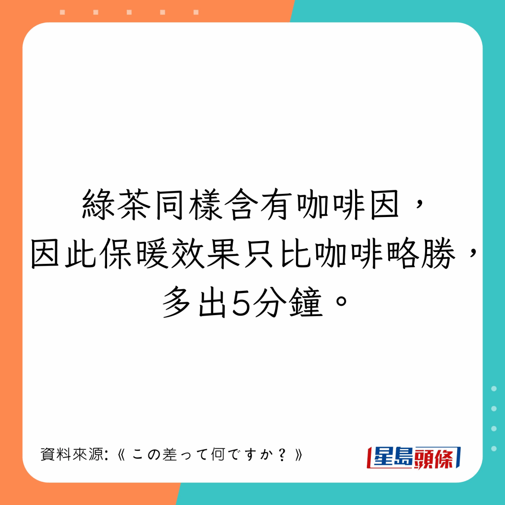 為了保暖,不少人會選擇飲姜茶暖身,但原來姜茶并非最有效的保暖飲品。有日本節(jié)目實測6款熱飲的暖身效果,并測試其保暖持久度,結(jié)果發(fā)現(xiàn)第一位可以保暖長達(dá)1小時,比姜茶更有效。