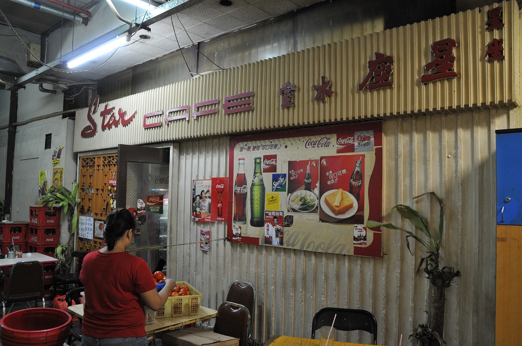 星座冰室的位置非常隱蔽,從破舊的商場入口,再經(jīng)過幽暗的樓梯才能到達。冰室至今仍保留著開店時的木板掛墻餐牌,加上傳統(tǒng)的卡位、長木桌、吊扇,令人有一種時光倒流的感覺。