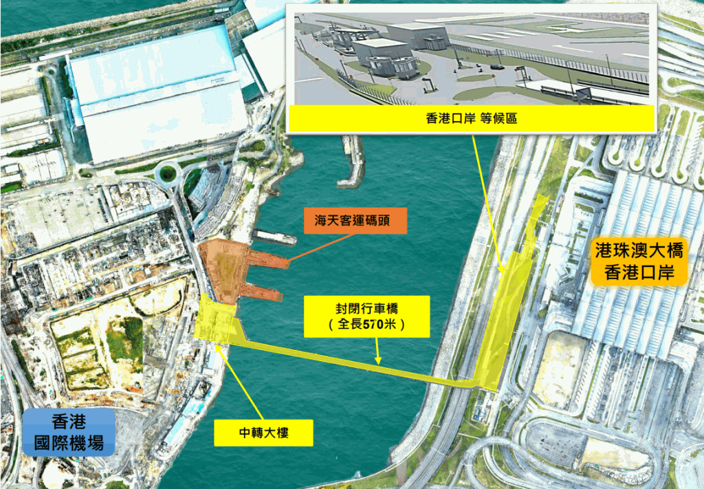 ▲今年海天中轉(zhuǎn)大樓落成,可實施陸空轉(zhuǎn)乘服務,乘客毋須辦理香港出入境手續(xù),及免離境稅。