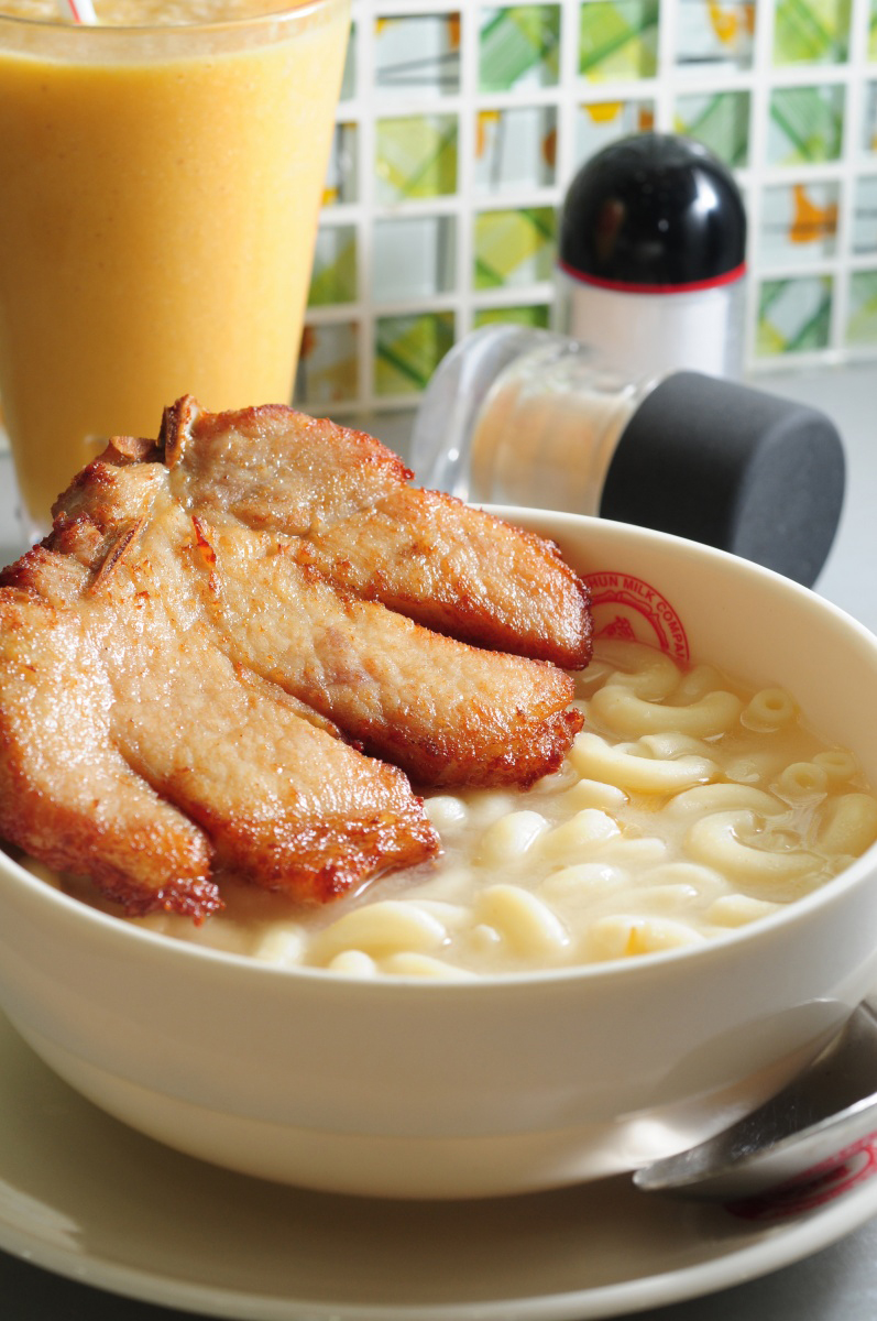 來(lái)自澳門(mén)的義順,可說(shuō)是揉合了茶餐廳和甜品店的Crossover版茶餐廳,傳統(tǒng)茶記食品如通粉、三文治、多士等,統(tǒng)統(tǒng)都可在餐牌上找到,不過(guò),款式不多,因?yàn)榕鯃?chǎng)客大多為招牌的雙皮奶而來(lái),它以百分百純牛奶制成,以自家獨(dú)門(mén)秘方,可不加雞蛋成份亦能令其挺身,入口時(shí)只會(huì)嘗到香濃無(wú)比的奶香,口感滑溜滋潤(rùn)。
